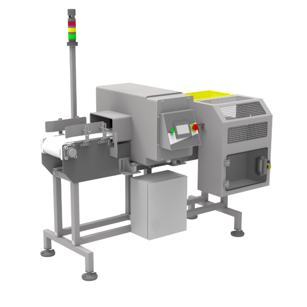 - Verifica o contaminante do produto em movimento, podendo detectar contaminantes metálicos em baixas e altas velocidades;