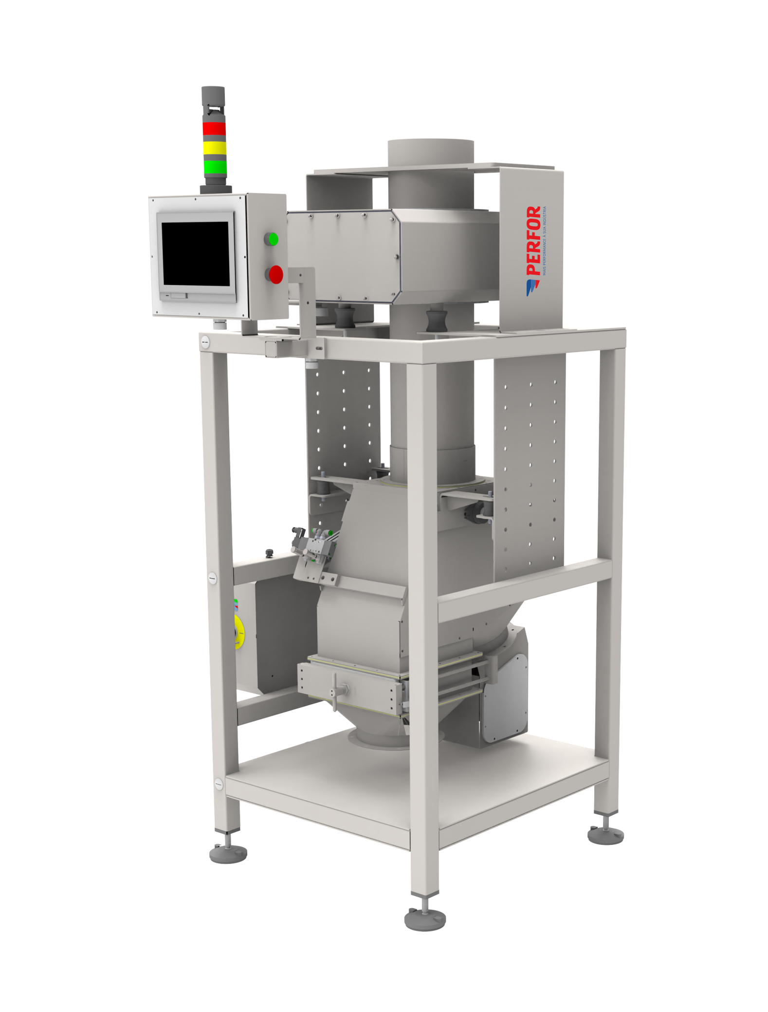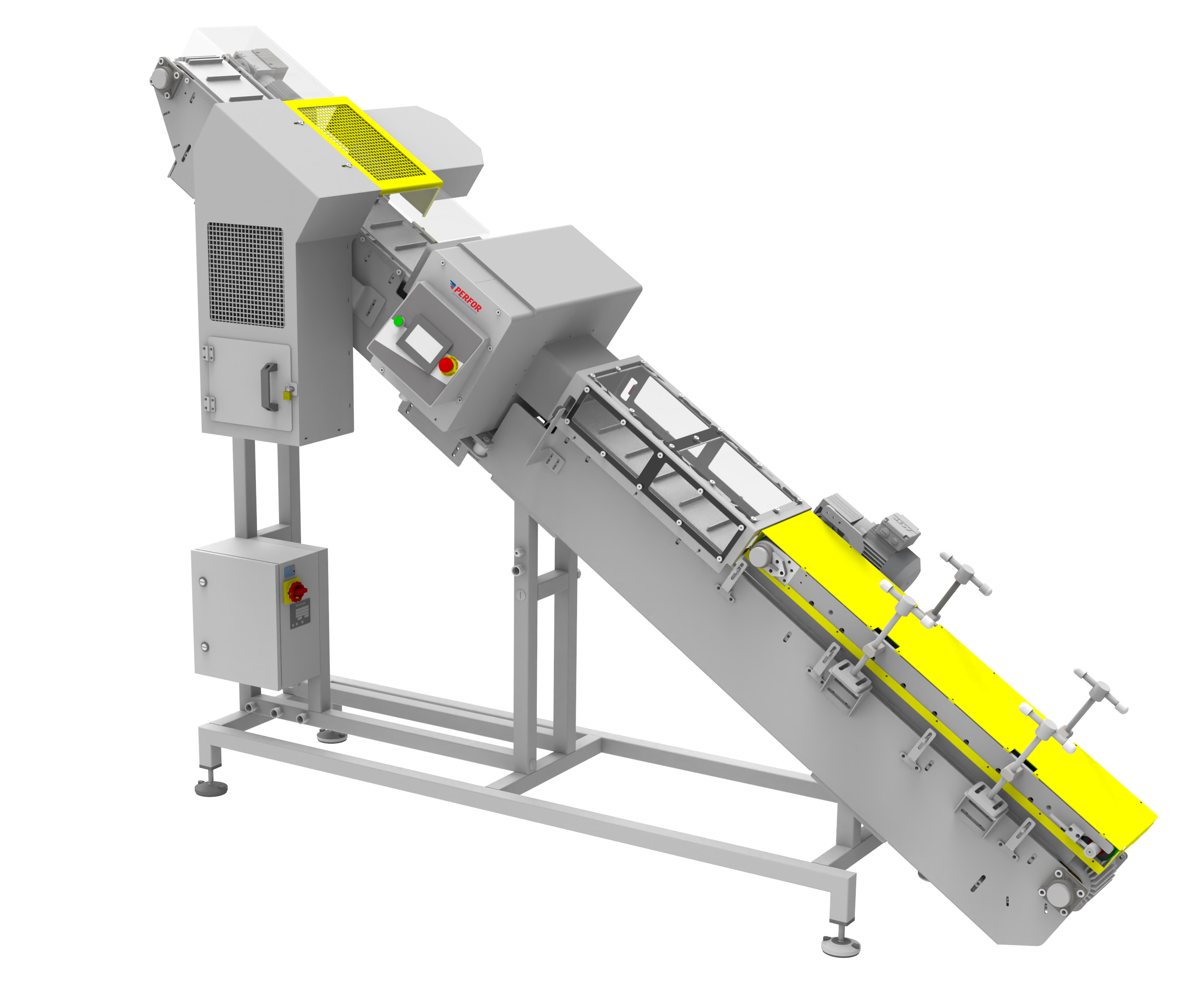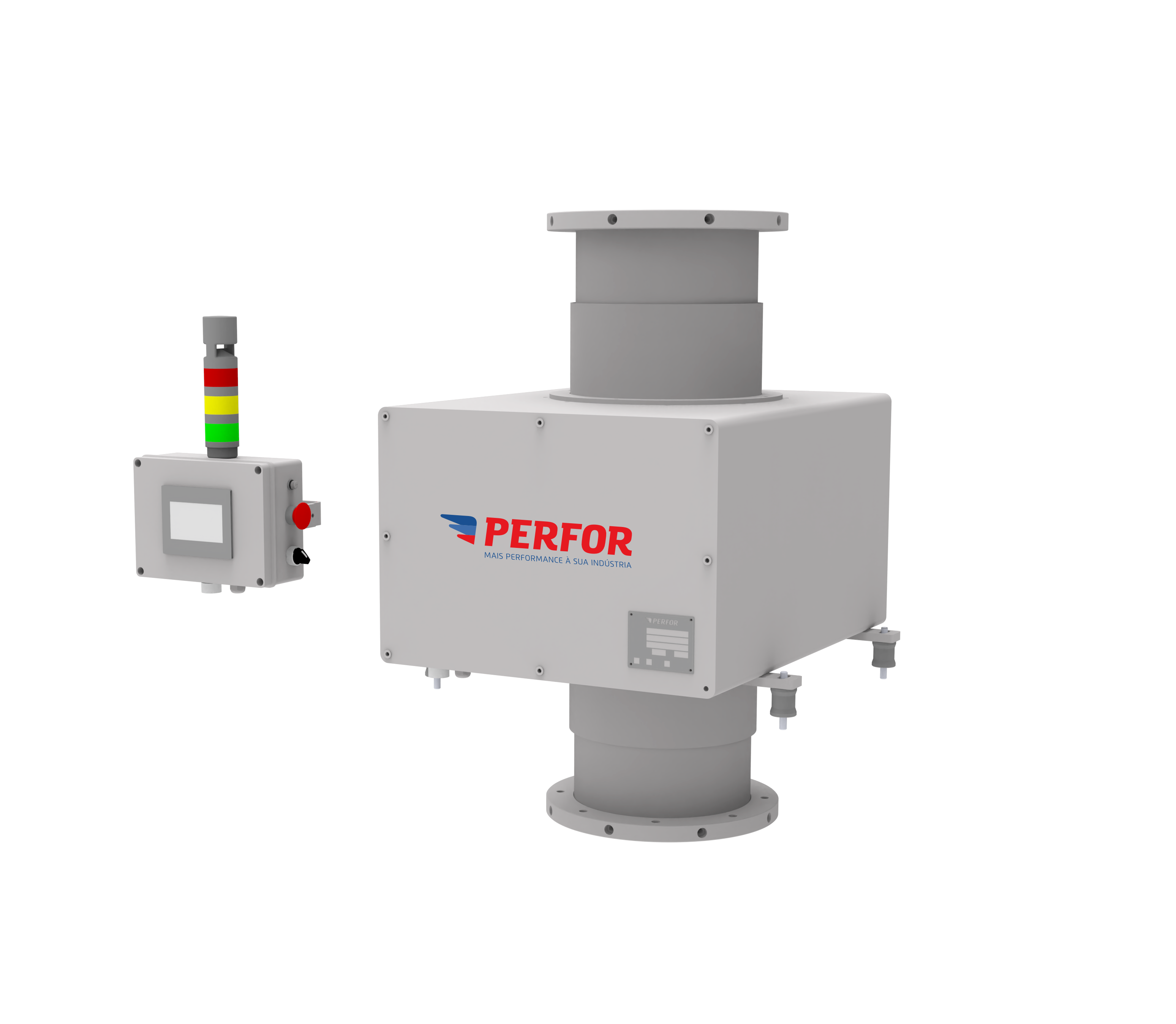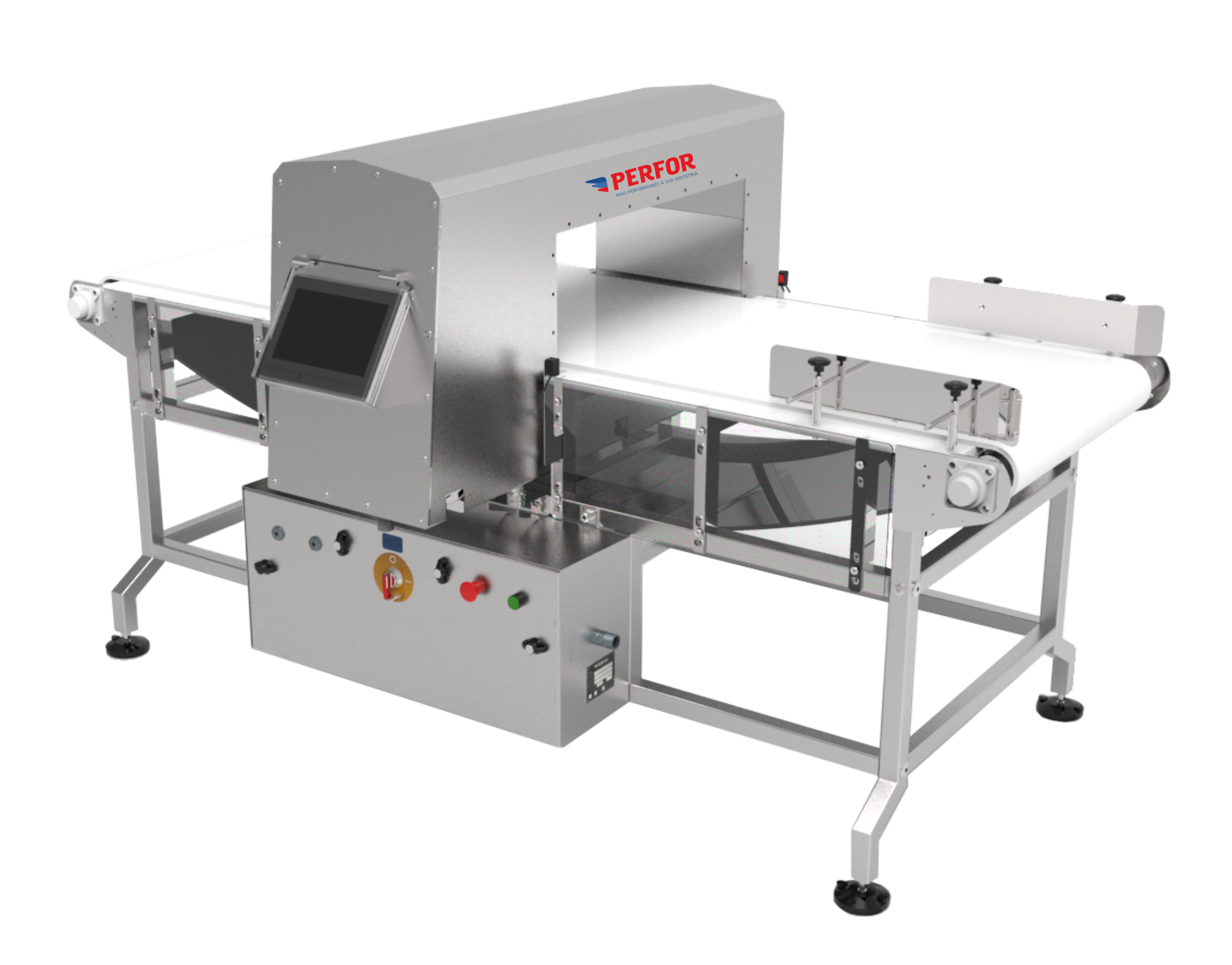 - Os detectores de metais fabricados pela PERFOR baseiam-se, de forma simplificada, em uma antena transmissora, que envia um campo magnético à uma antena receptora. Caso ocorra a passagem de algum contaminante metálico pelo equipamento, o sinal da antena receptora é alterado, possibilitando a detecção do corpo estranho;