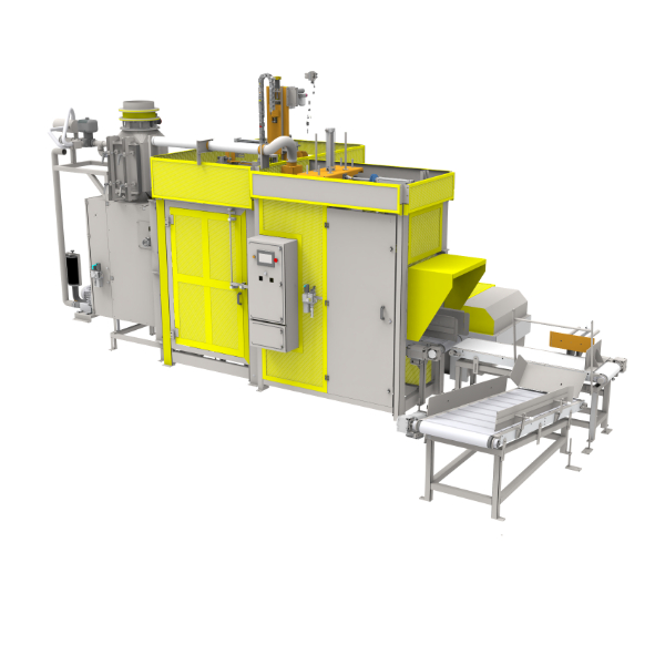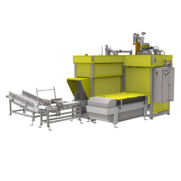 - Aplica automaticamente a sacaria na Ensacadeira de Sacos Valvulados, e o equipamento completa o peso até o valor desejado. Em seguida a sacaria é direcionada para sistema de fechamento automático;