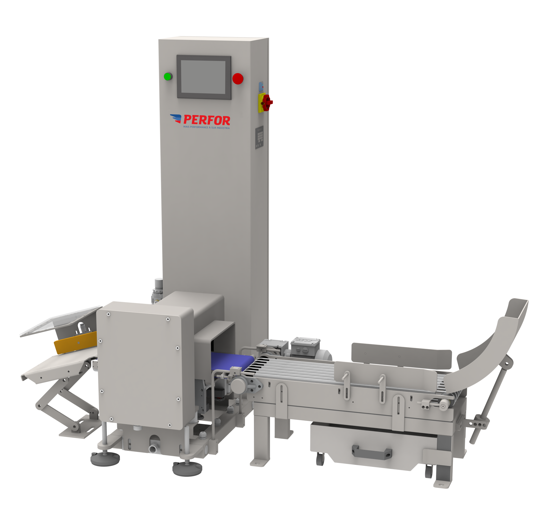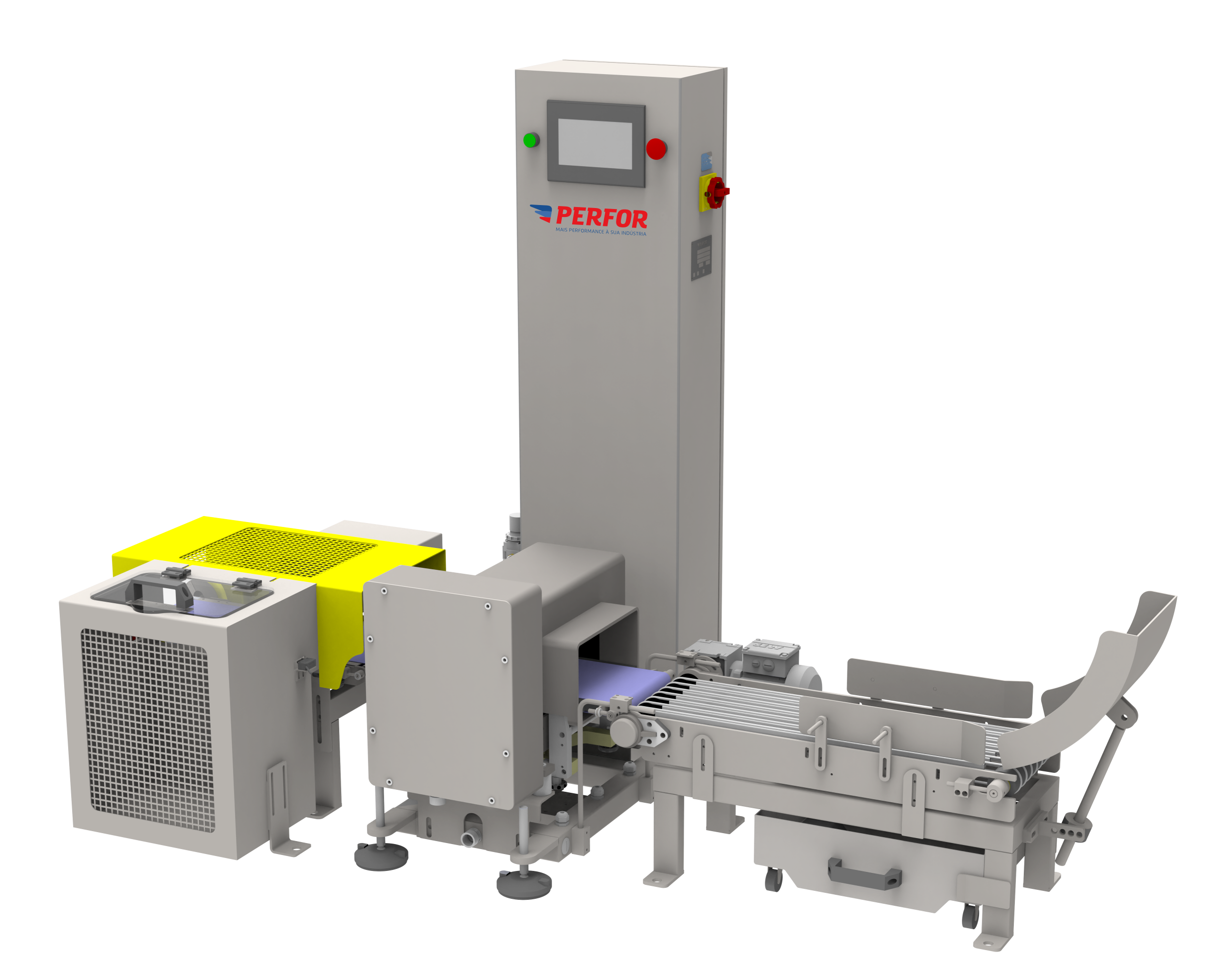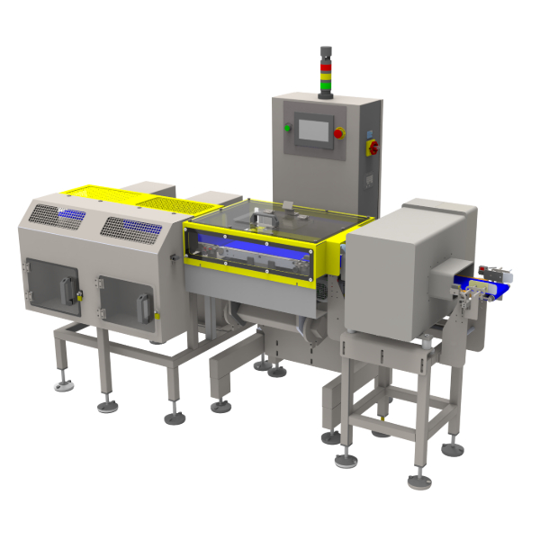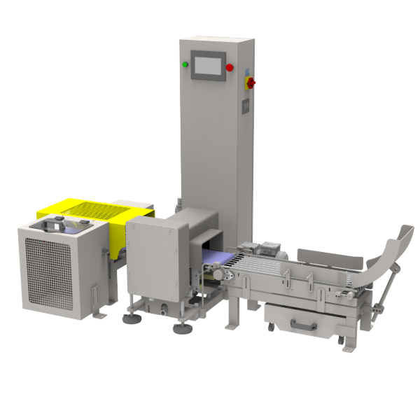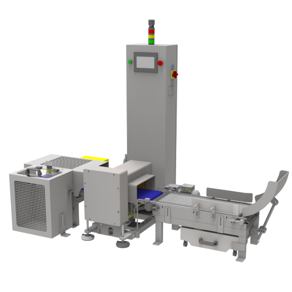- Verifica o peso do produto e a presença de contaminantes metálicos contidos nele, em movimento, isto é, podendo pesar e detectar contaminantes metálicos em baixas e altas velocidades;